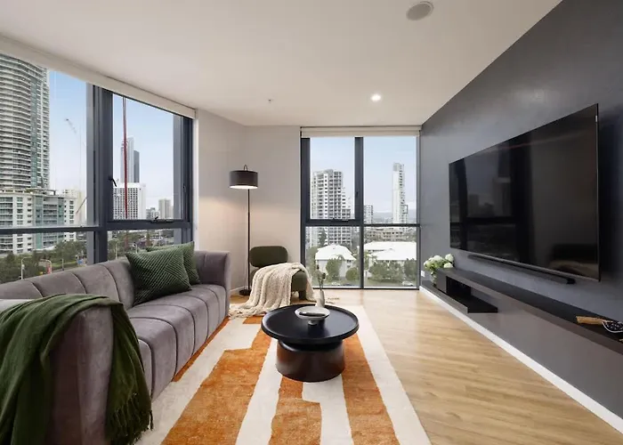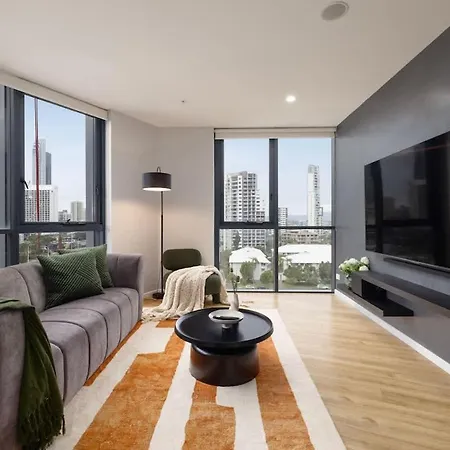 L'appartement Ruby Tower 1Br Luxury Walk To Beach & Cavill Ave spacieux comprend un patio avec une climatisation pour un plus grand confort. L'endroit comprend 1 chambre à coucher à coucher. L'appartement dispose d'une salle de bains avec sèche-cheveux et draps de bain.